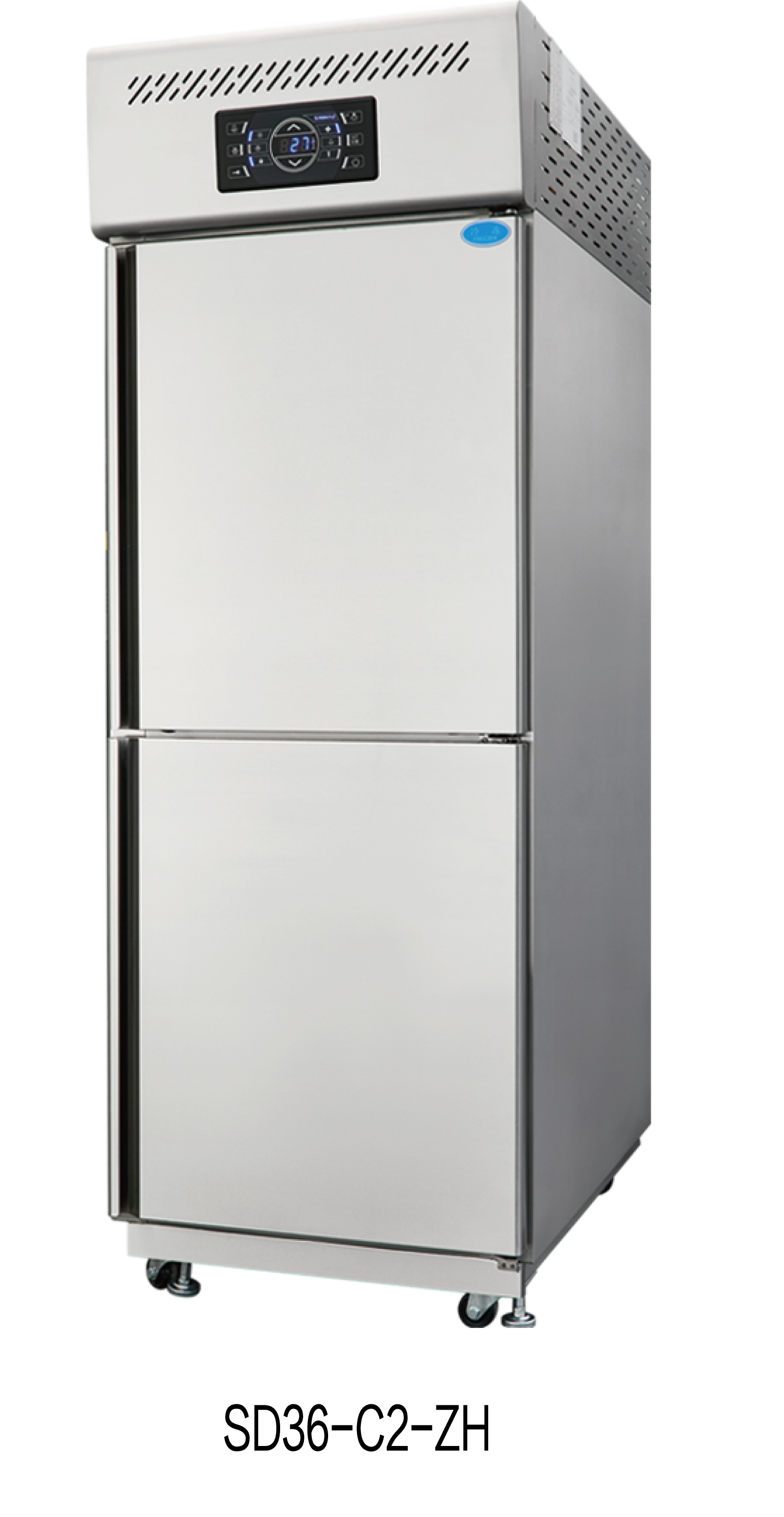 大容量組合用冰箱 ⑴ 可放置18層,共36個(gè)烤盤(pán) ⑵ 可根據(jù)門(mén)店大小,同醒發(fā)箱,熱風(fēng)爐,插架,儲(chǔ)物柜等自由搭配不同組合,滿足門(mén)店的生產(chǎn)需求。